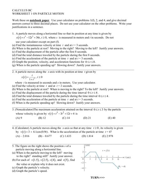 Calculus BC Worksheet 1 on Particle Motion is a great resource for students who are trying to understand the concepts of particle motion and how to use calculus to solve problems. It provides plenty of practice problems and examples that can help students understand the concepts better. By using the worksheet, students can gain a better understanding of particle motion and how to use calculus to solve problems.