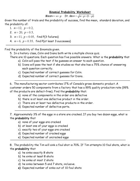 Understanding the Binomial Distribution Worksheet Answer Key